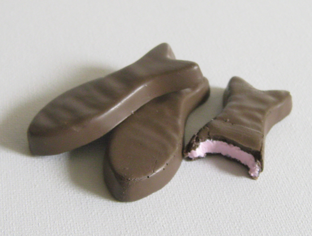 A Google image search for “chocolate fish” will net MANY more photos of chocolate fish with their poor heads bitten off.