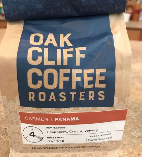 Most of the Panamanian coffees I’ve tried have been ridiculously expensive Geishas (and I sure do love those!), but I also am quite fond of beans from Panama in general. One of the first beans I reviewed for this blog was the Klatch Panama Elida Honey, and that bag still stands out in my memory as one of my favorites of all time. I don’t often see Panamanian beans available, but I was exceptionally lucky to see this Oak Cliff Coffee Roasters bag at Whole Foods that was just a day post-roast! Talk about fresh!!