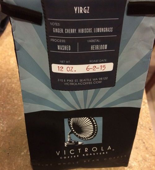 My first experience with Victrola’s beans was their Kenya Nyeri Tambaya Peaberry, which was NOT a favorite of mine, but I have heard enough good things about this roaster that I decided that I needed to pick up a different bag of theirs while in Seattle. I am fond of washed Ethiopian coffees, so I decided to give their YIRGZ a try.